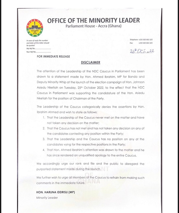 The NDC MPs in parliament have issued a wild statement after unfortunate news about their supposed endorsement for one chairman