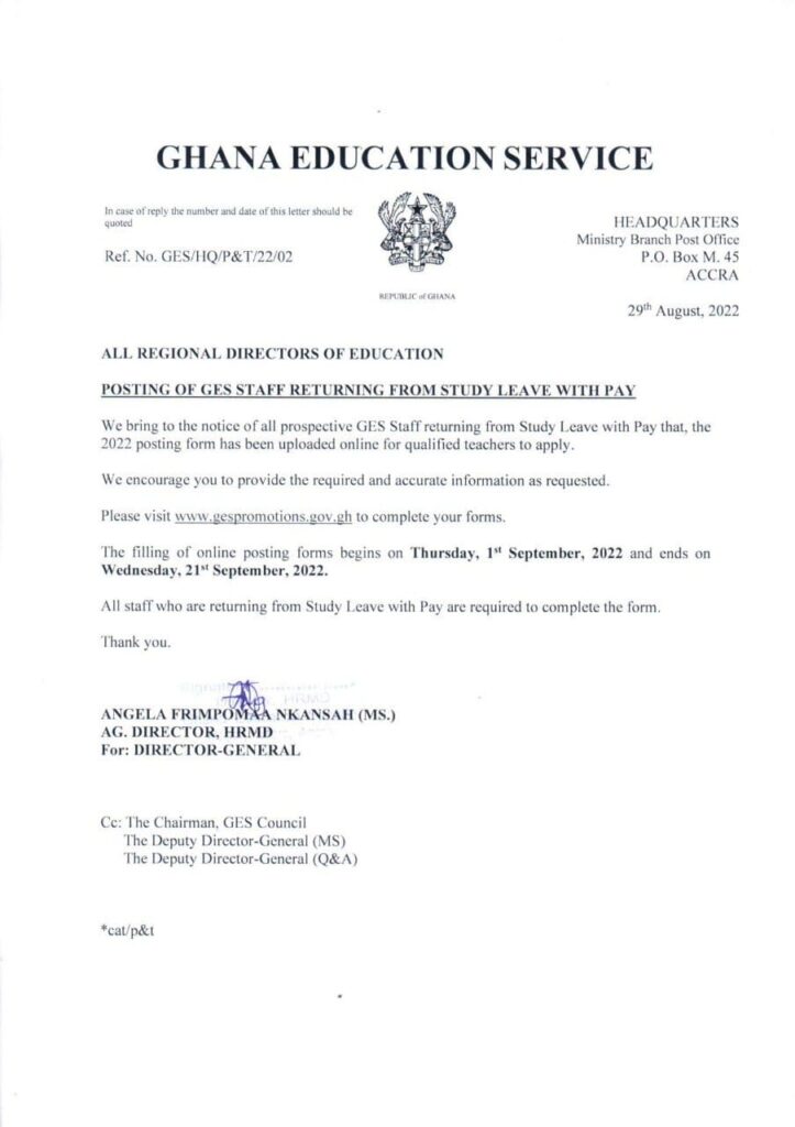 Available document to MYLIFEGUIDEONLINE.COM has it that the Ghana Education Service has opened its portal for postings of staff. In