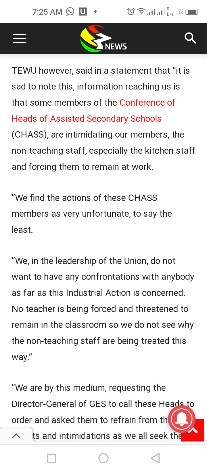The general secretary of TEWU noted “We are by this medium also telling ALL the Non-Teaching staff to withdraw all services and stay at home until you hear from us, your leaders.