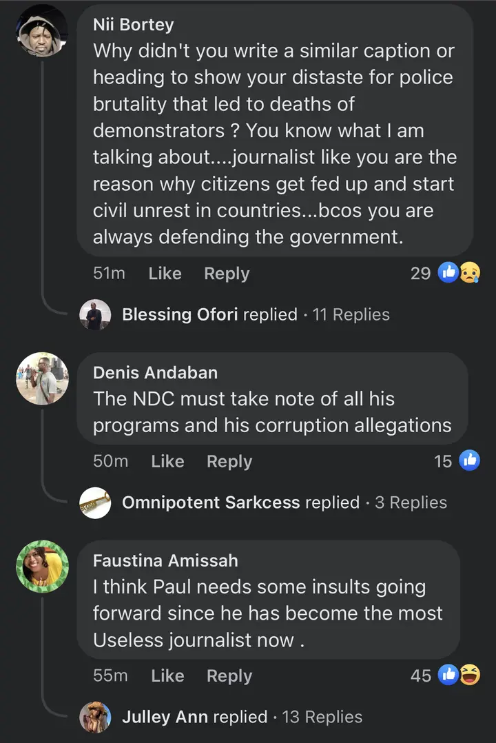 Below is a look at some of the comments that came through as individuals expressed their immense thoughts, concerns and disappointment over Paul Adom Okyere’s recent post about the unexpected clash between the Ghana Police Service and “Arise Ghana” demonstrators.