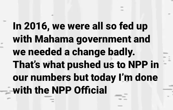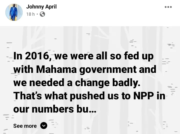 When Mahama’s government failed to deliver on its promises in 2016, Ghanaians were ready for a new government. As a result, a significant number of us joined the NPP. But today, I’m officially done with the NPP,” Johnny April announced on Facebook.