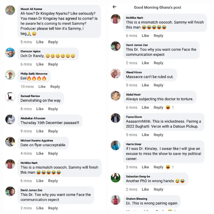A poster of the programme has been posted and has sent many Ghanaians reacting. Many feel that this is a mismatch. They have wondered why Metro TV and Good Morning Ghana will pair these 2 panelists. This is not the first time Sammy is clashing with Dr. Nyarko and the former has virtually won on all occasions. Check out some of the reactions to the pairing for this morning’s discussion.